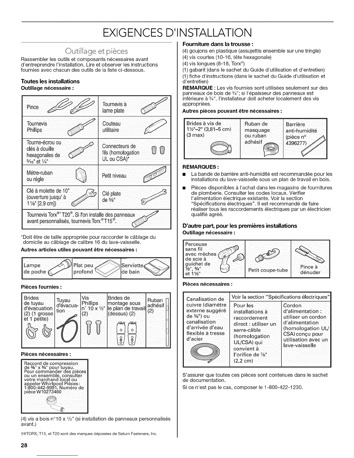 inferieure & 3/4",I'installateur doit acheter Iocalement des vis
