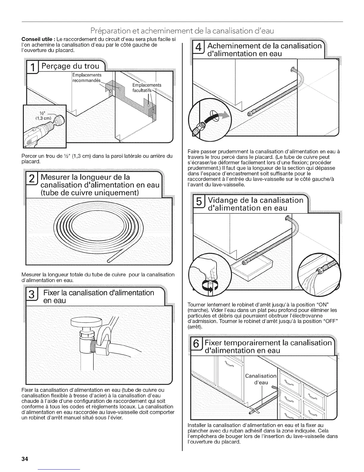 d'alimentation en eau raccordee au lave-vaisselle doit comporter