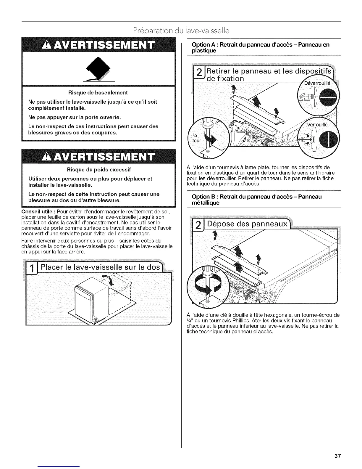 d'acces et le panneau inferieur au lave-vaisselle. Ne pas retirer la