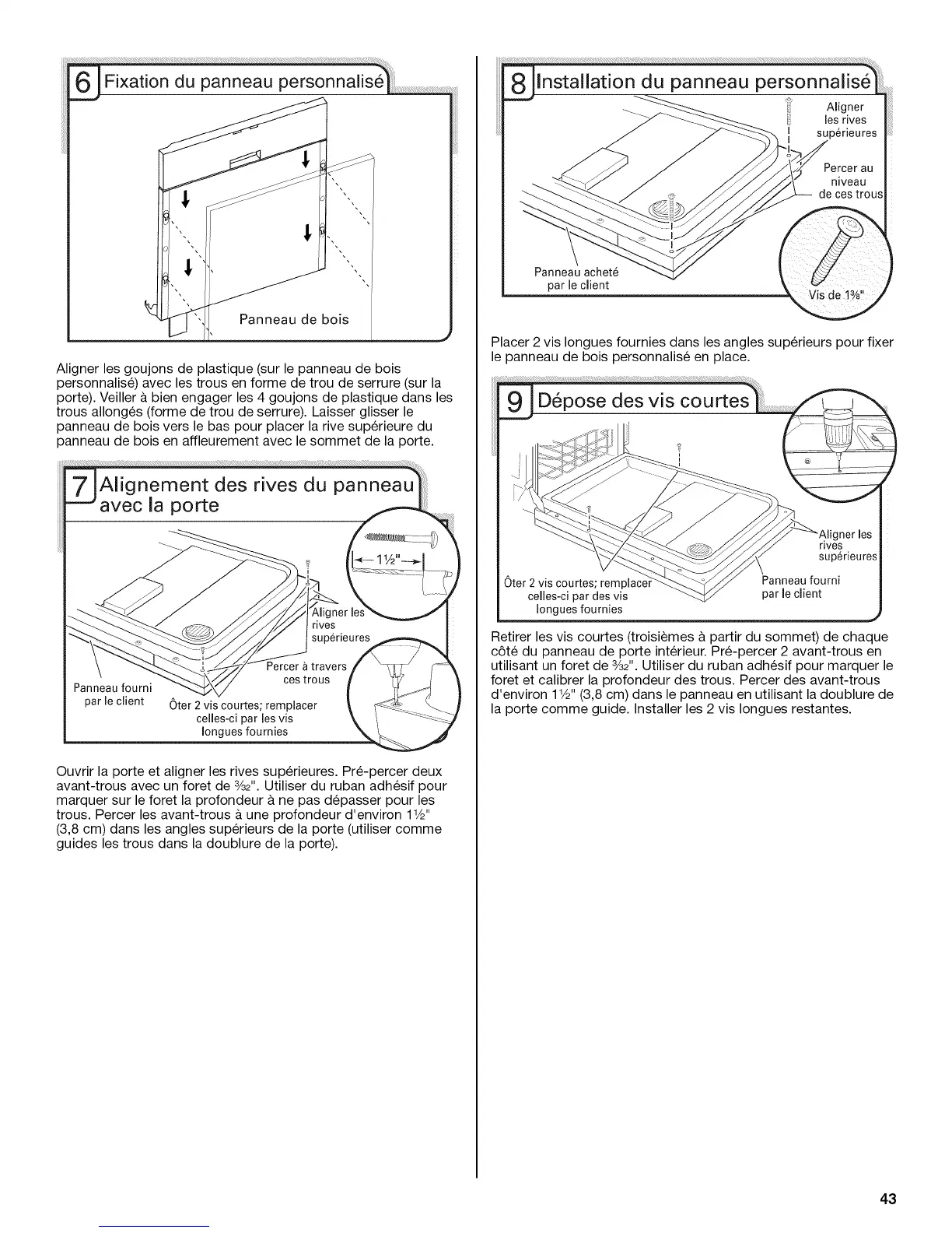 d'environ 11/2"(3,8 cm) dans le panneau en utilisant la doublure de