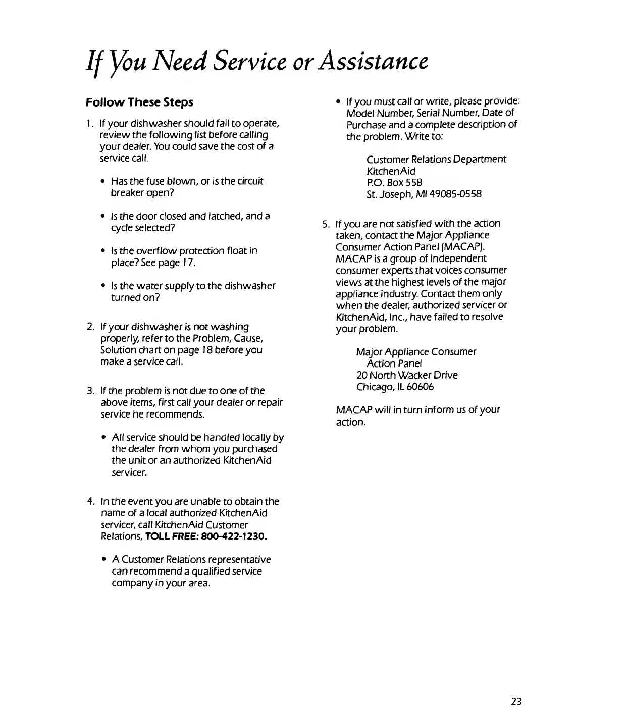 KitchenAid KUDM220T - If You Need Service or Assistance.23