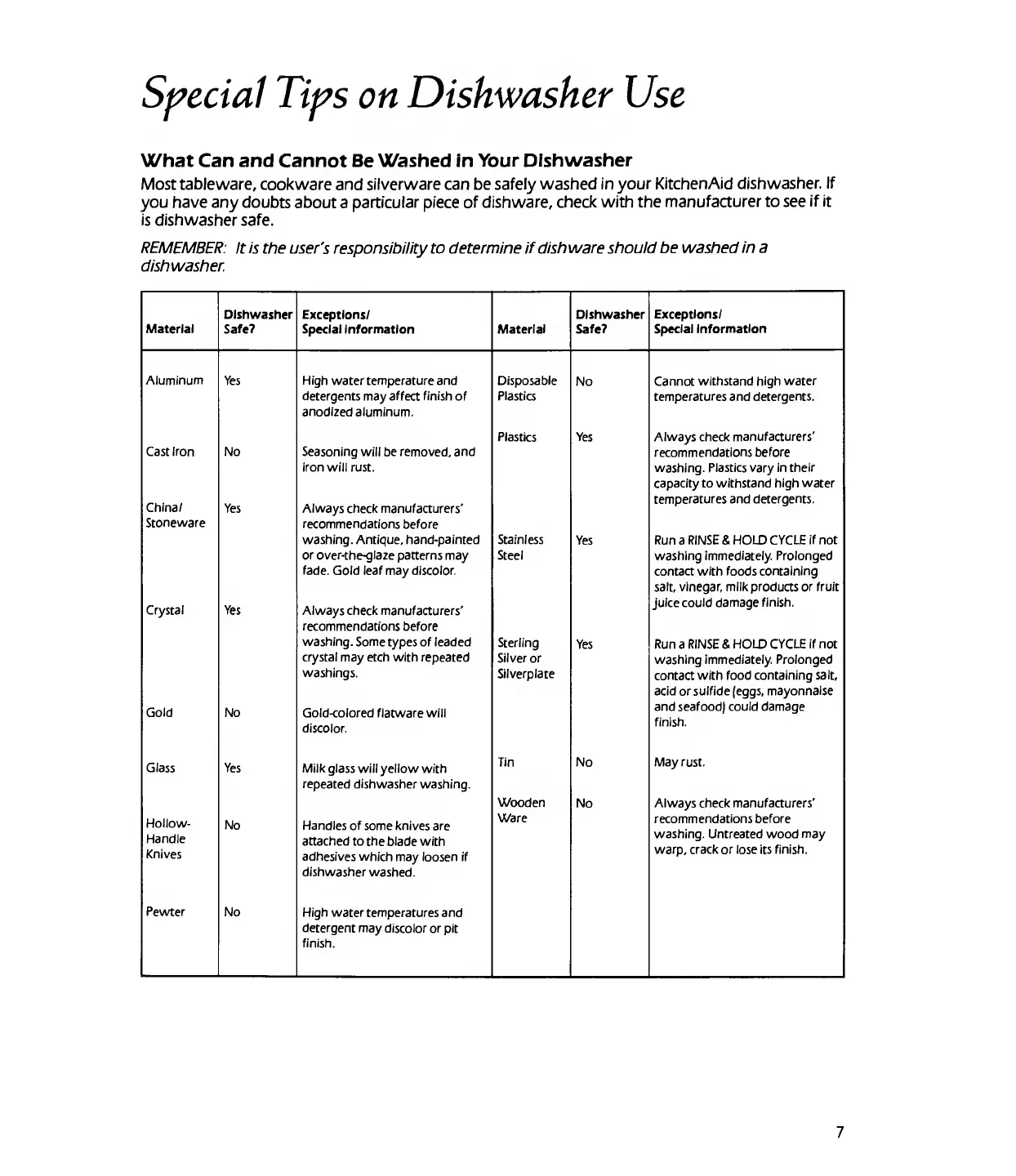 KitchenAid KUDM220T - Special Tips on Dishwasher Use