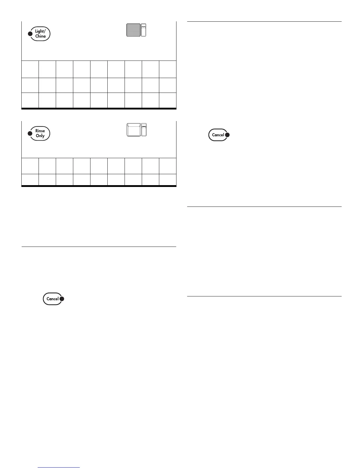 Press CANCEL before starting the dishwasher to clear all options
