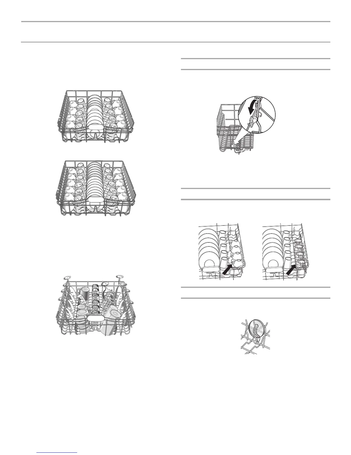 ■ Load glasses and cups in top rack only. The bottom rack is