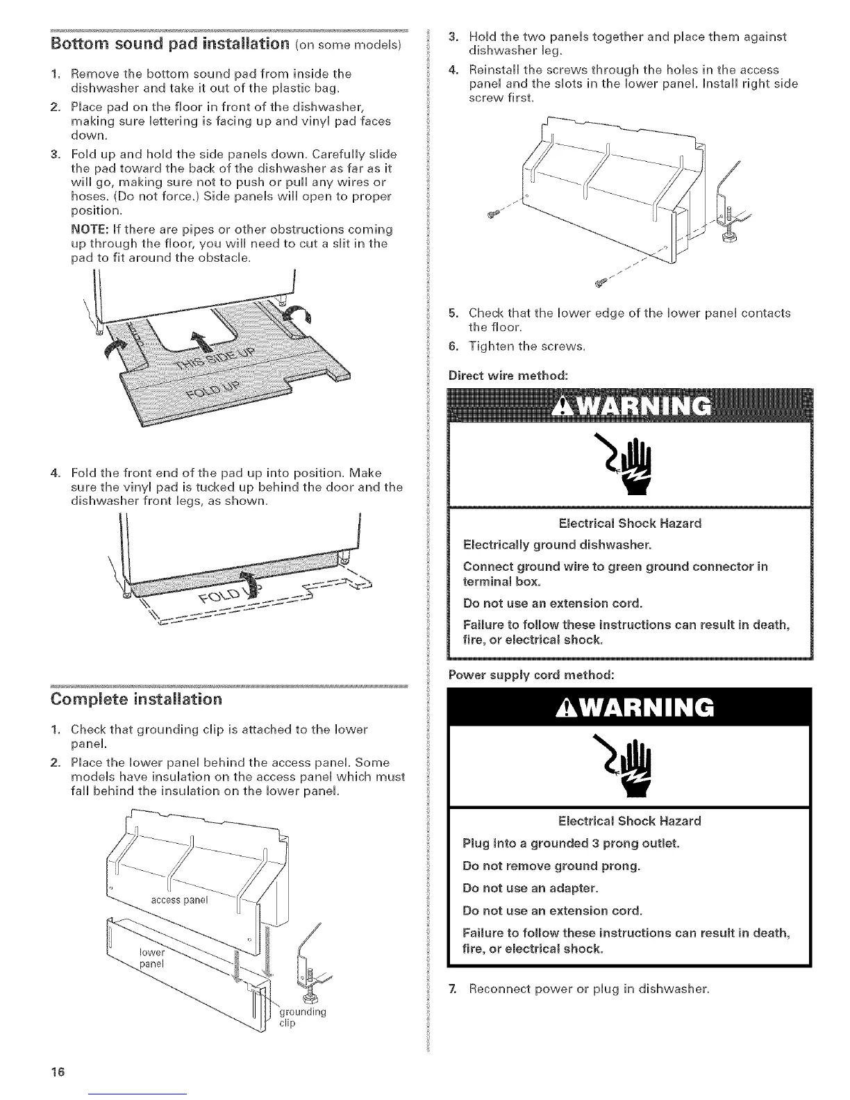 Bottom sound pad installation (on somemodels)