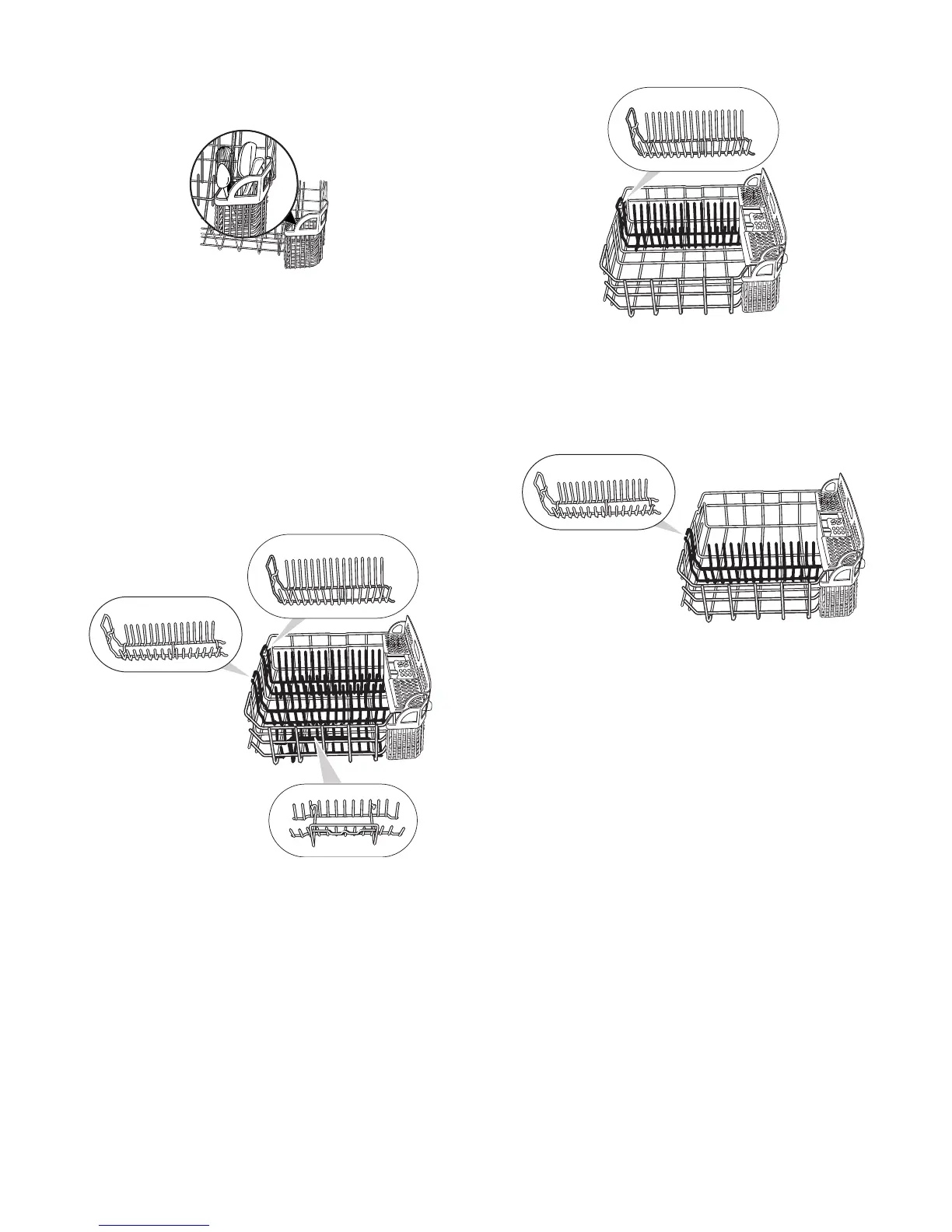 Le panier à ustensiles se suspend sur le panier inférieur dans le