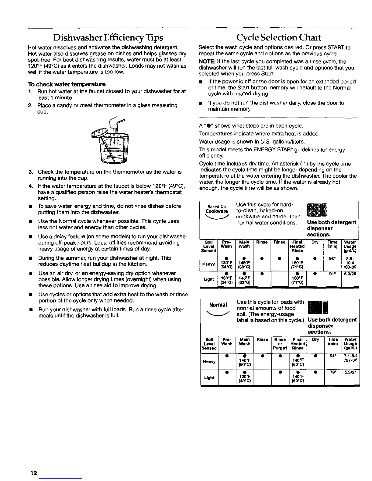 120°F (49°C) as it enters the dishwasher. Loads may not wash as