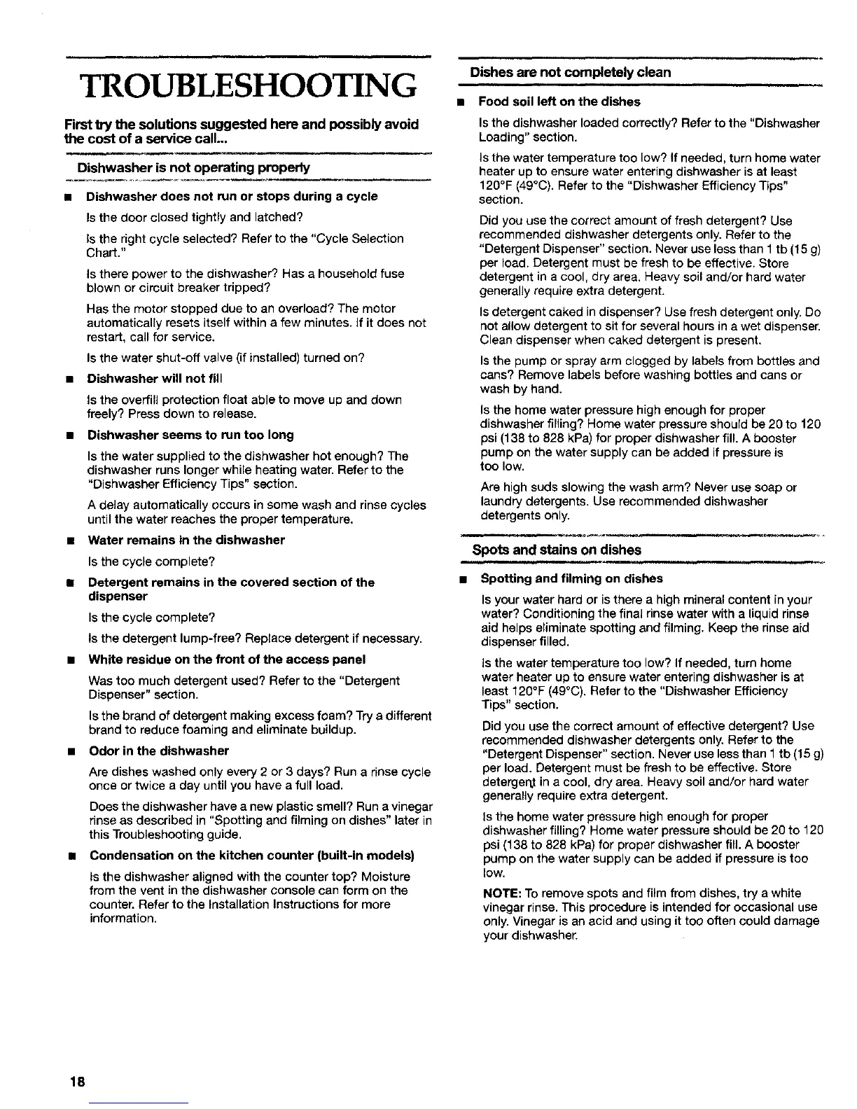 NOTE: To remove spots and film from dishes, try a white