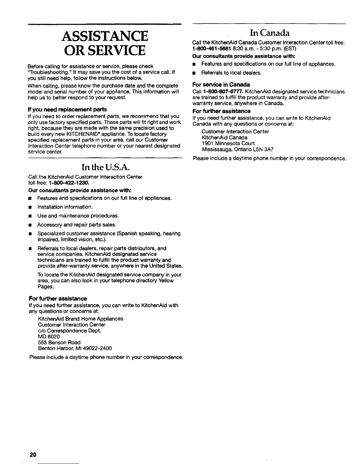 Call the KitchenAid Canada Customer Interaction Center toll free: