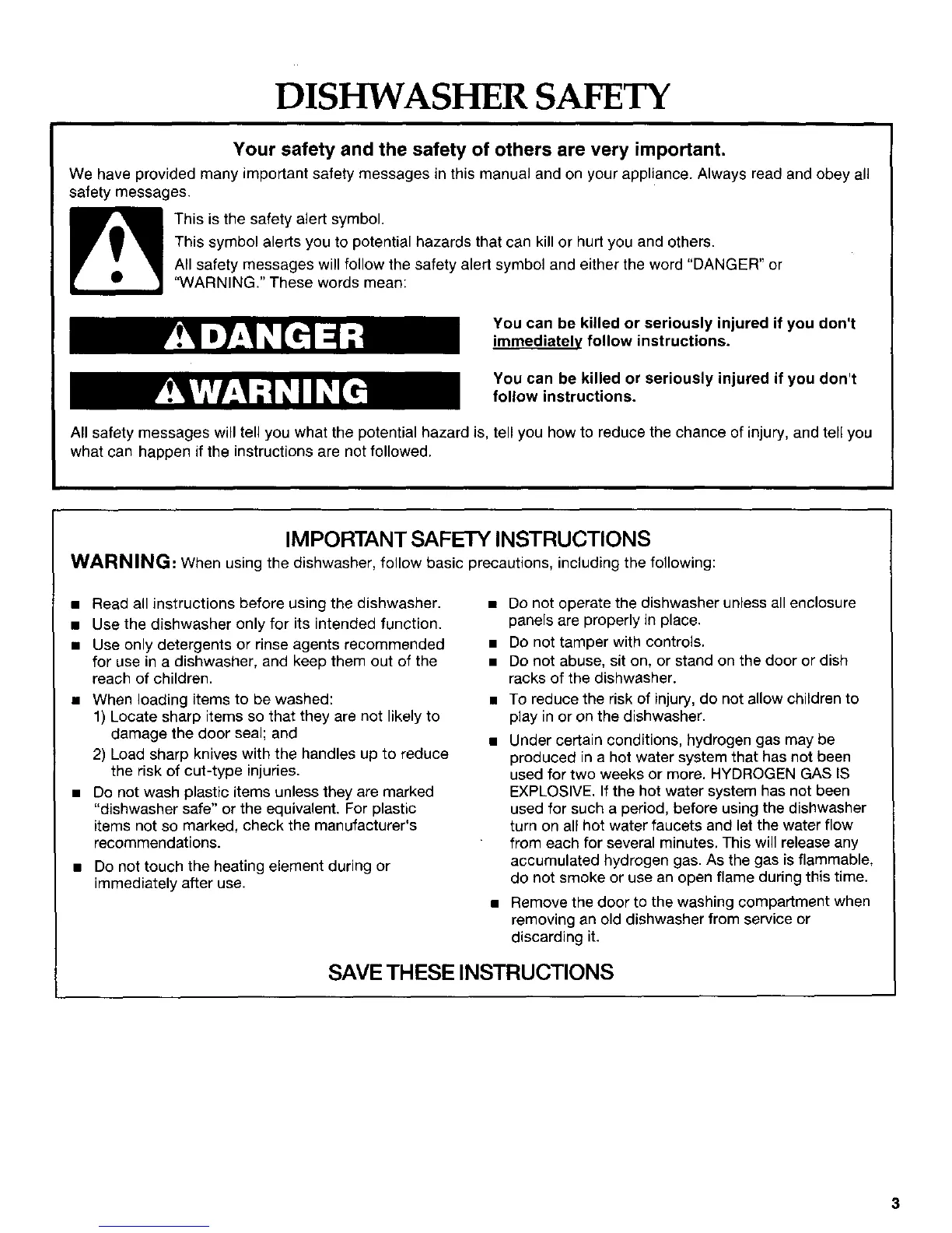 WARNING." When using the dishwasher, follow basic precautions, including the following:
