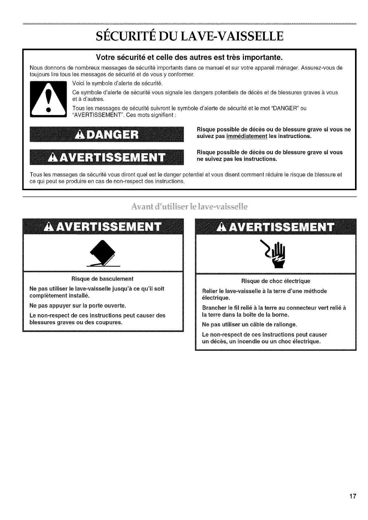 Nous donnons de nombreux messages de securite importants dans ce manuel et sur votre appareil menager. Assurez-vous de