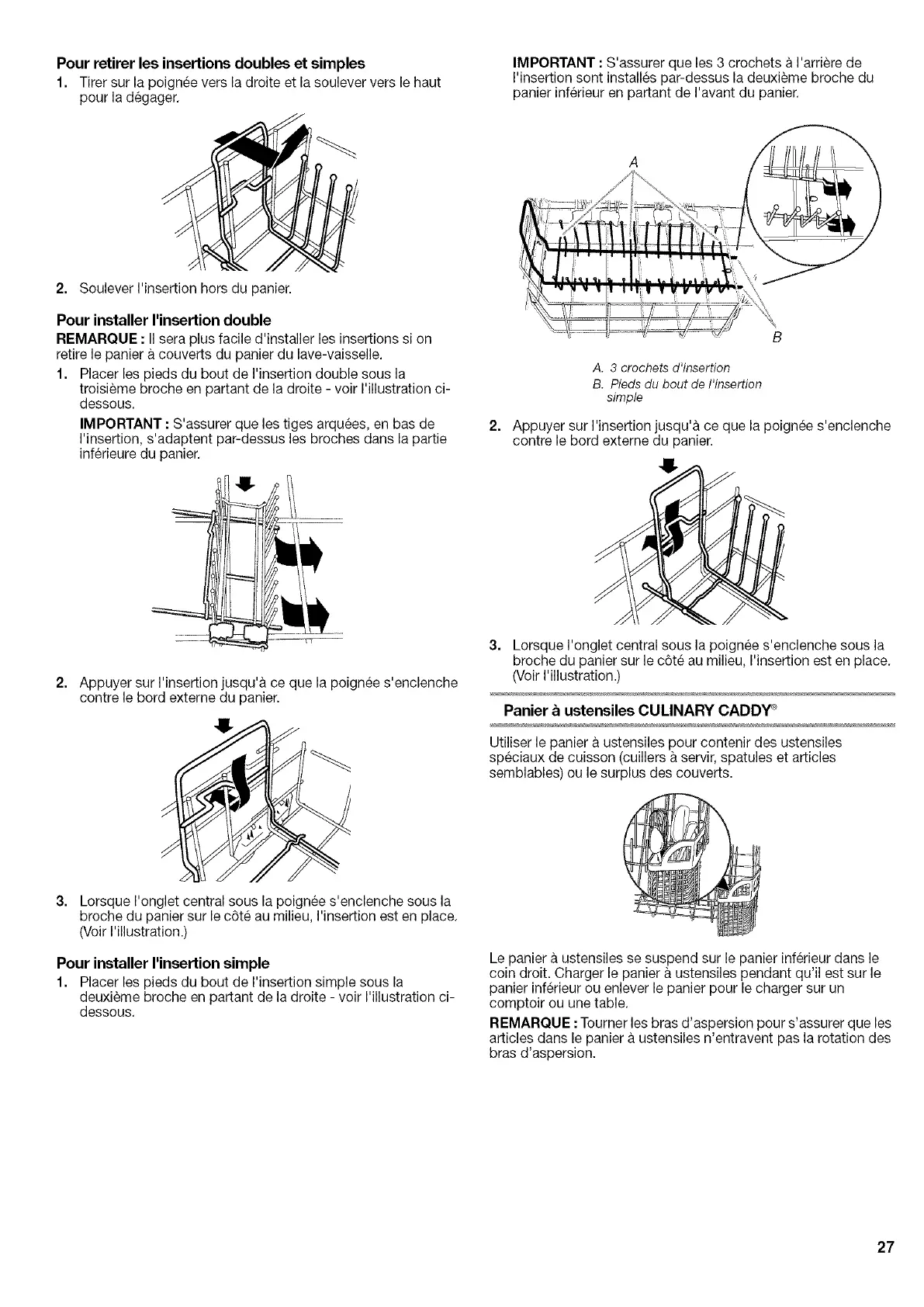 Le panier a ustensiles se suspend sur le panier inferieur dans le