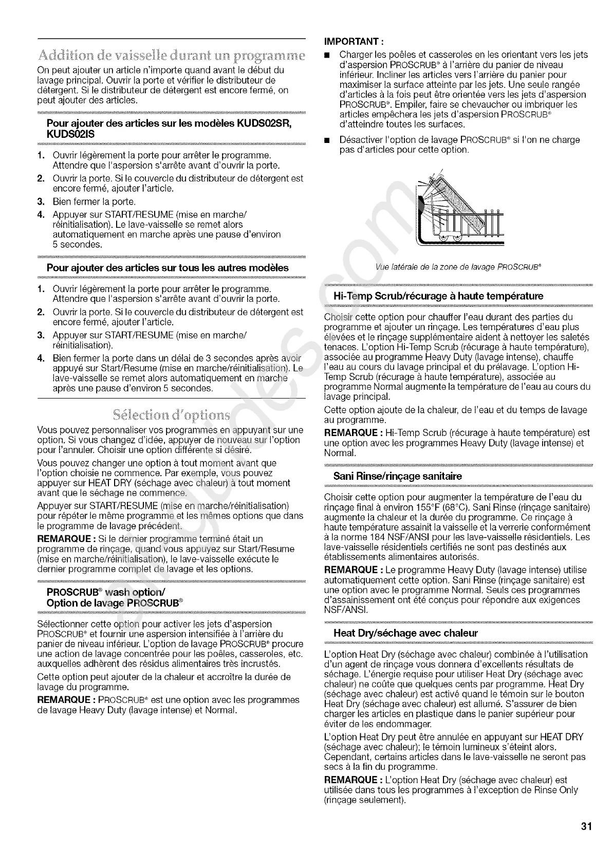 • Desactiver I'option de lavage PROSCRUB_si I'on ne charge