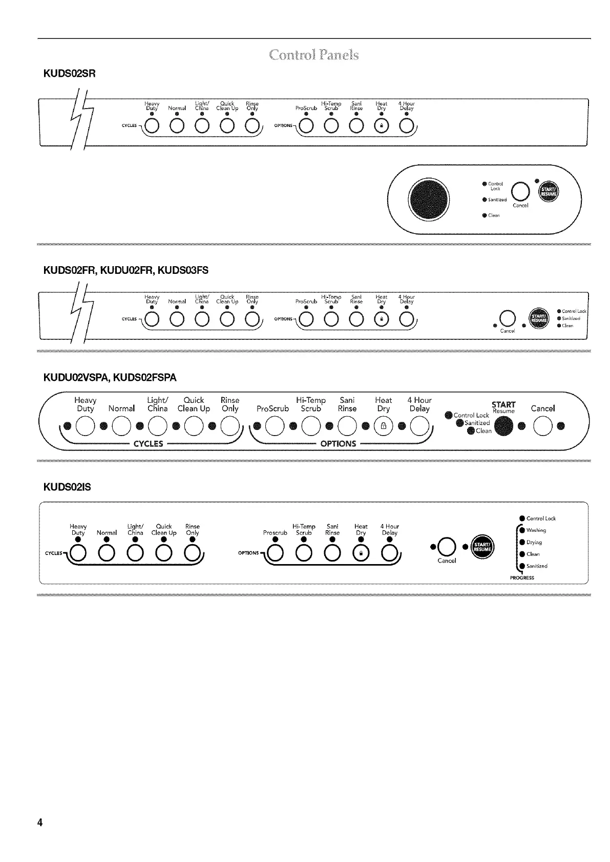 S eavy Light/ Quick Rinse Hi Temp Sani Heat 4 Hour START