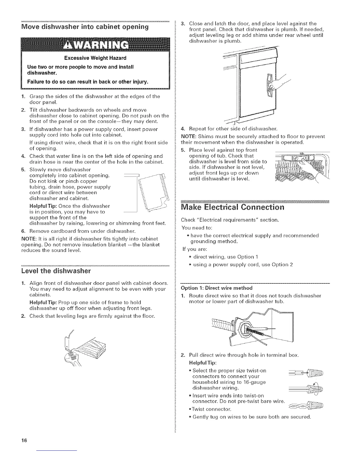 until dishwasher is level.