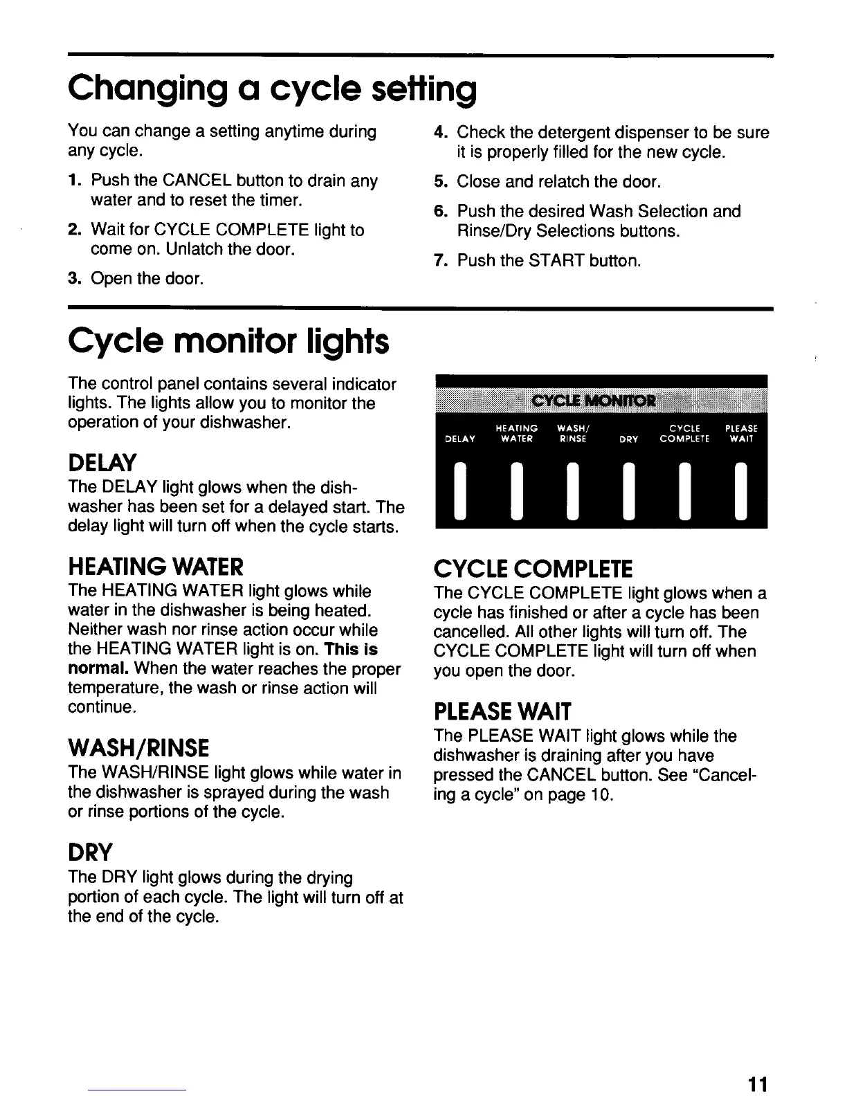 KitchenAid KUDS23HB - Changing a Cycle Setting; Cycle Monitor Lights; Delay; Heating Water