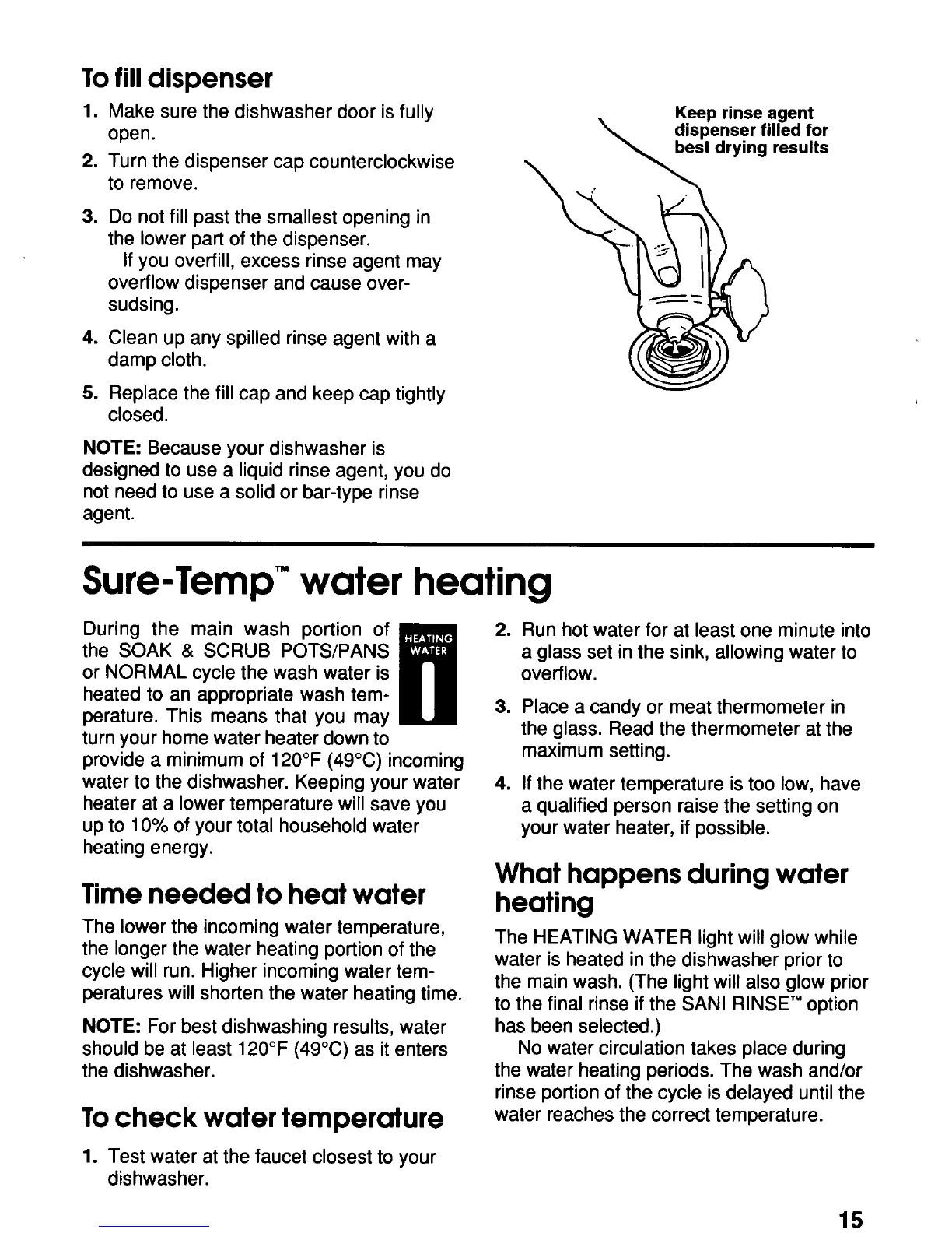 KitchenAid KUDS23HB - Sure-Temp Water Heating; To Fill Dispenser; Time Needed to Heat Water; What Happens During Water Heating