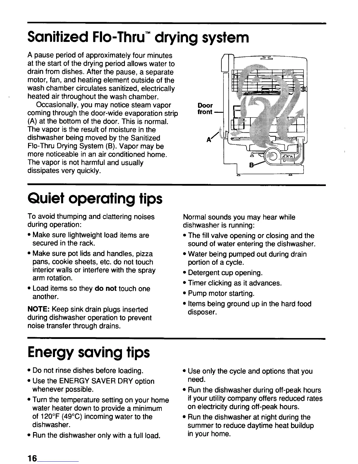 KitchenAid KUDS23HB - Sanitized Flo-Thru Drying System; Quiet Operating Tips; Energy Saving Tips