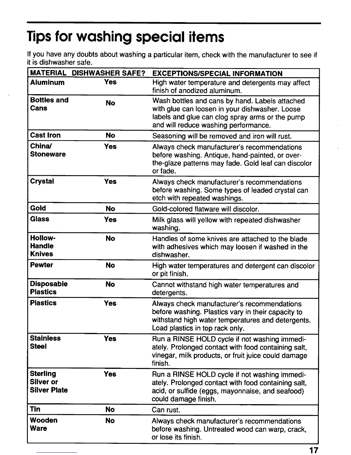 KitchenAid KUDS23HB - Tips for Washing Special Items