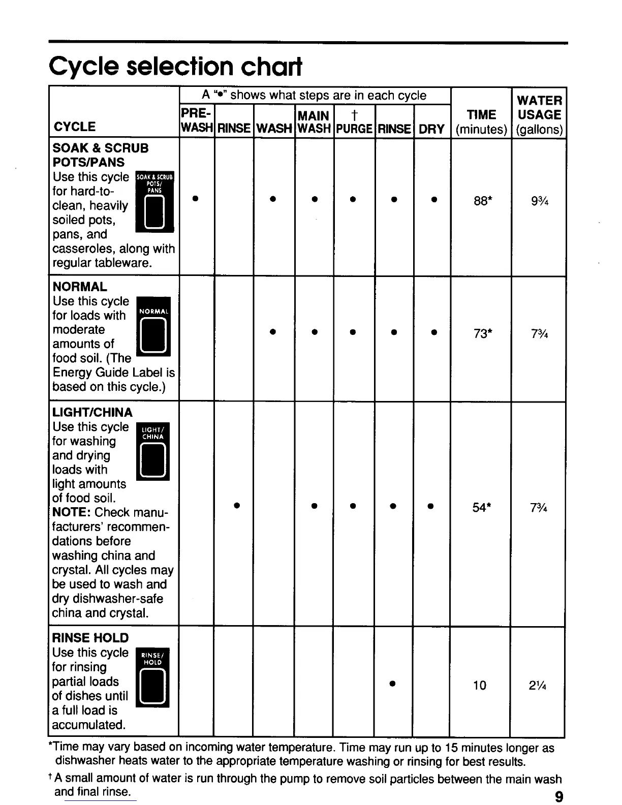 KitchenAid KUDS23HB - Cycle Selection Chart