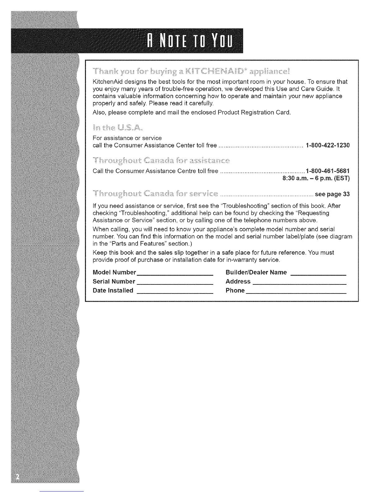 Assistance or Service" section, or by calling one of the telephone numbers above.