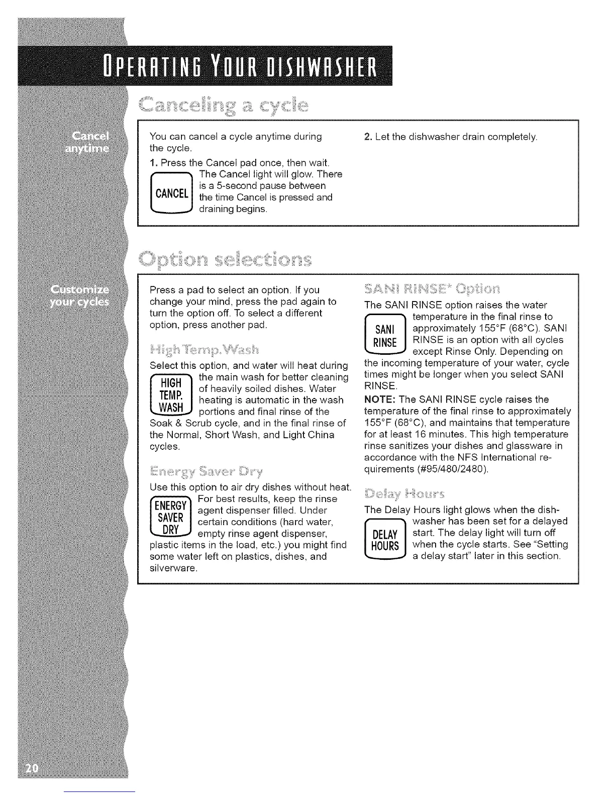 NOTE: The SANI RINSE cycle raises the