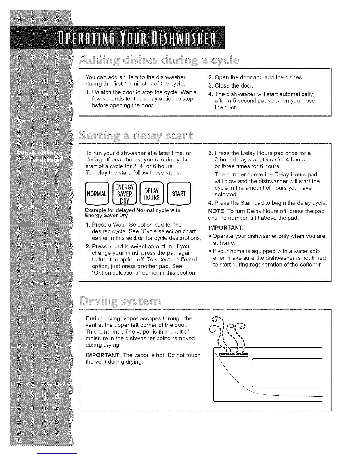 ,, Operate your dishwasher only when you are
