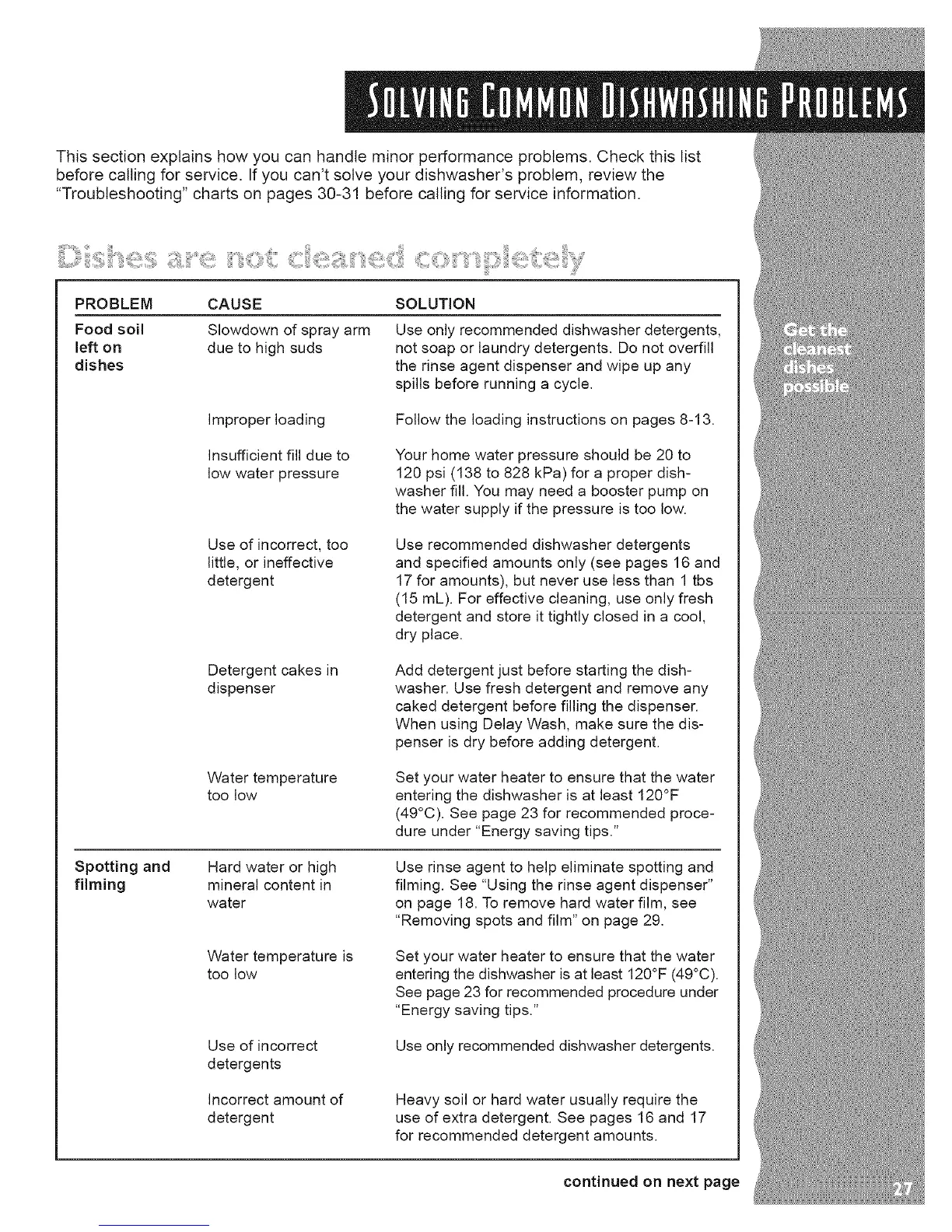 before calling for service. If you can't solve your dishwasher's problem, review the