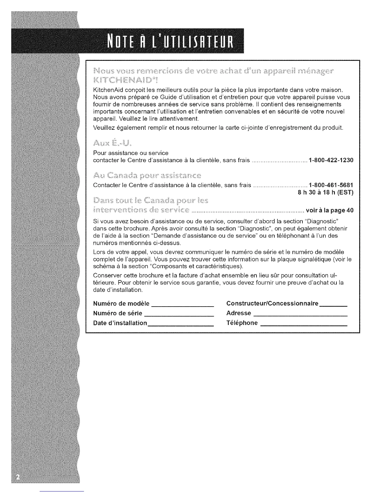 contacter le Centre d'assistance a la client61e, sans frais ................................ 1-800-422-1230