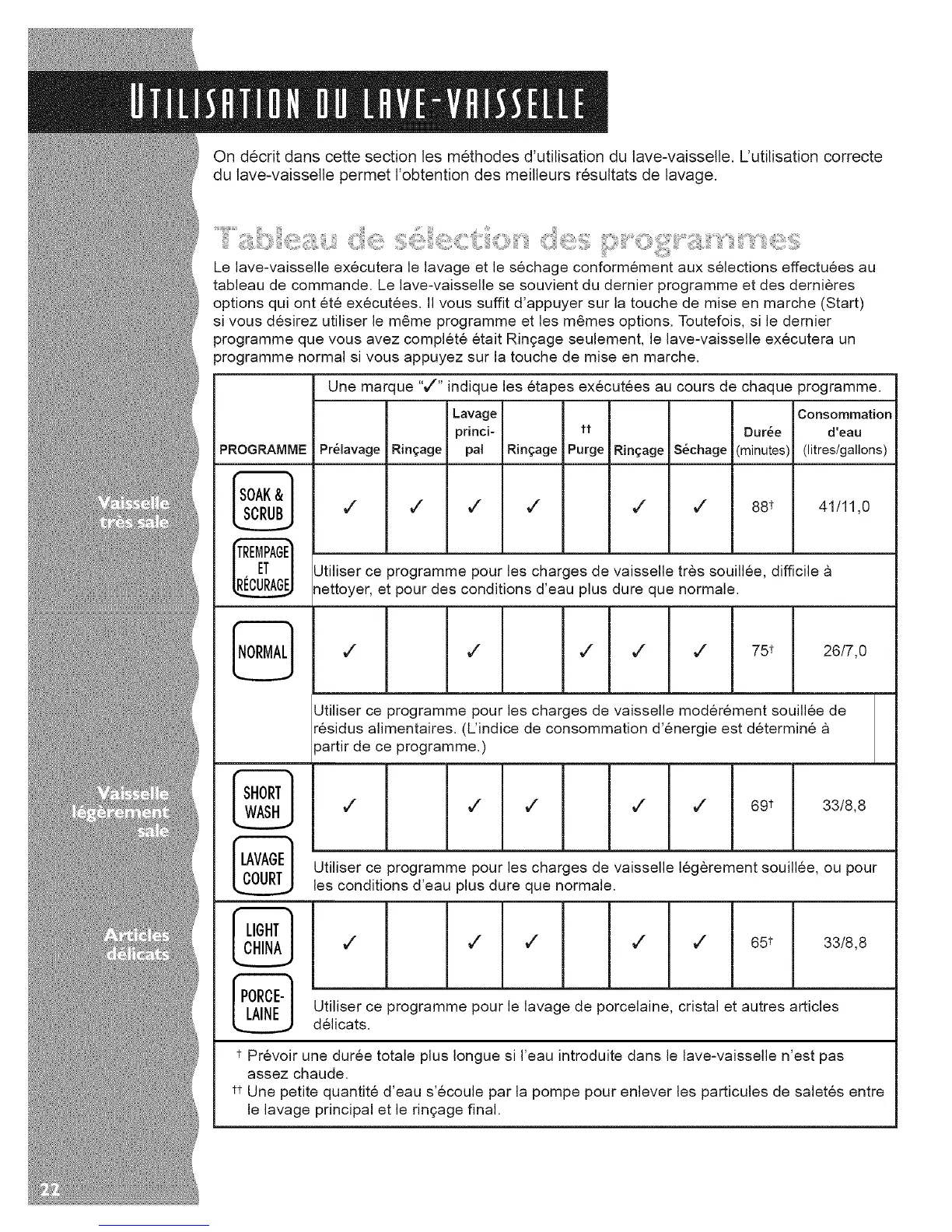 On decrit dans cette section les methodes d'utilisation du lave-vaisselle. L'utilisation correcte