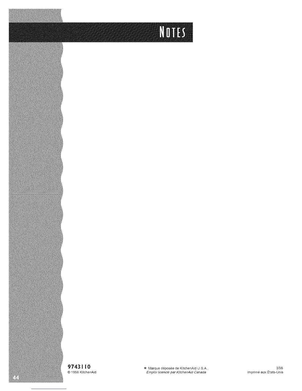 97431 I 0 * Marque dcposee de KitchenAid USA, 3/98