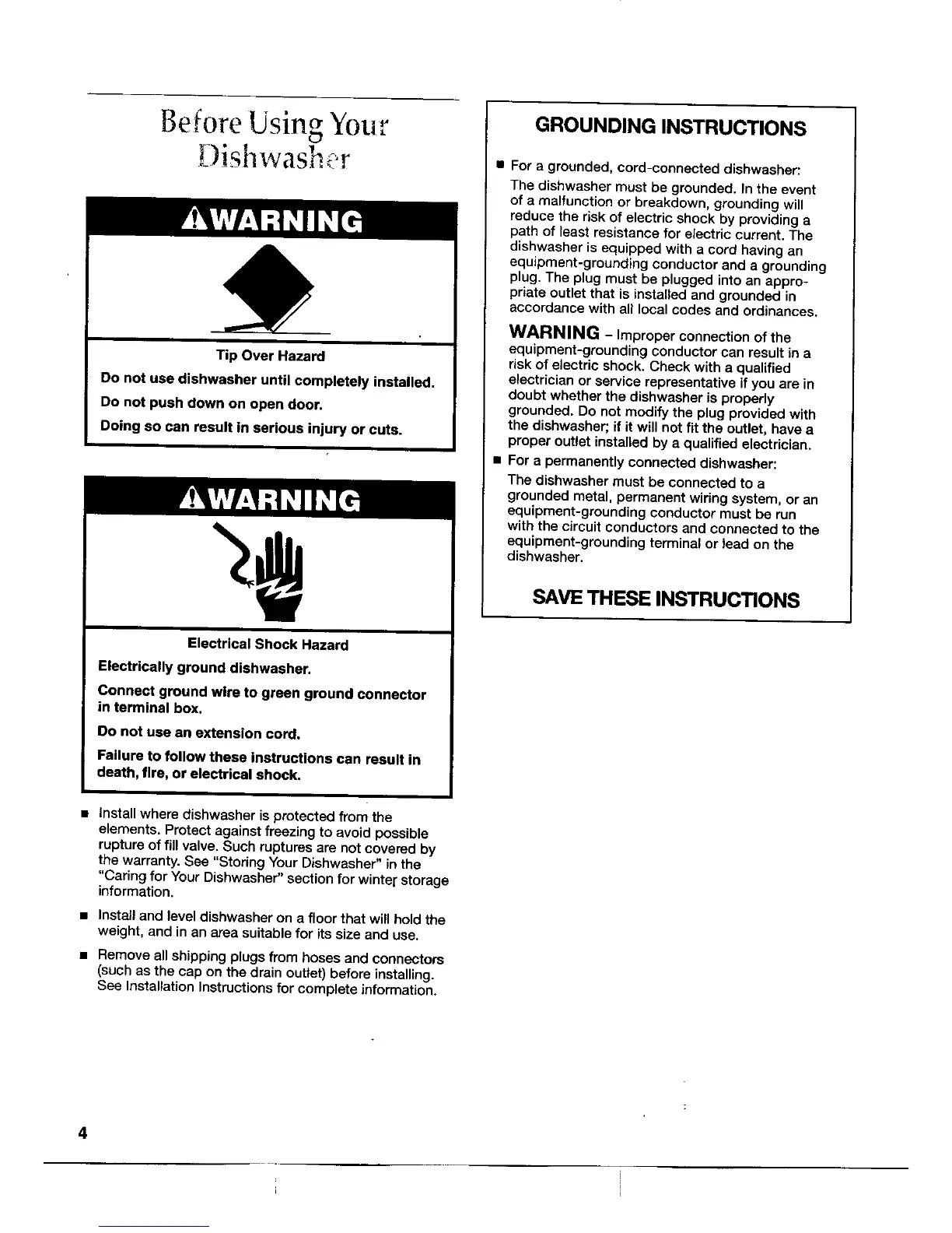 the warranty. See "Storing Your Dishwasher" in the