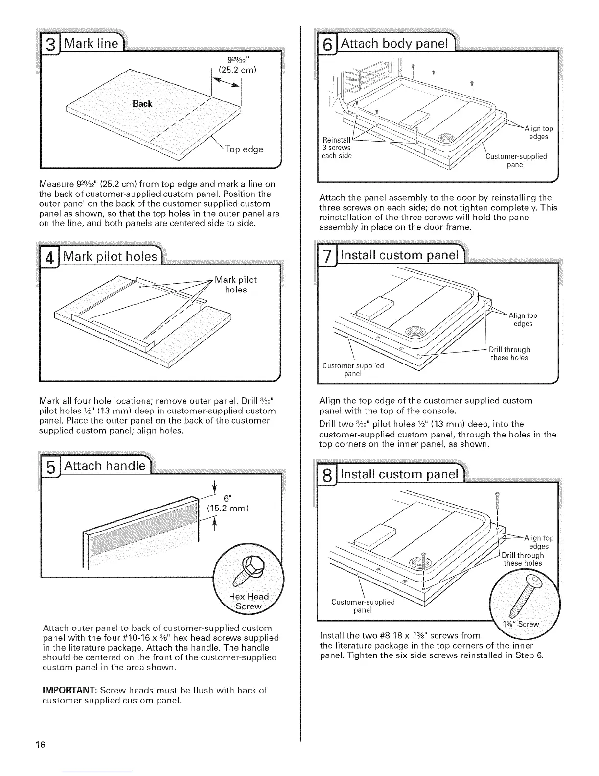 panel with the four #10-16 x 3/8"hex head screws supplied