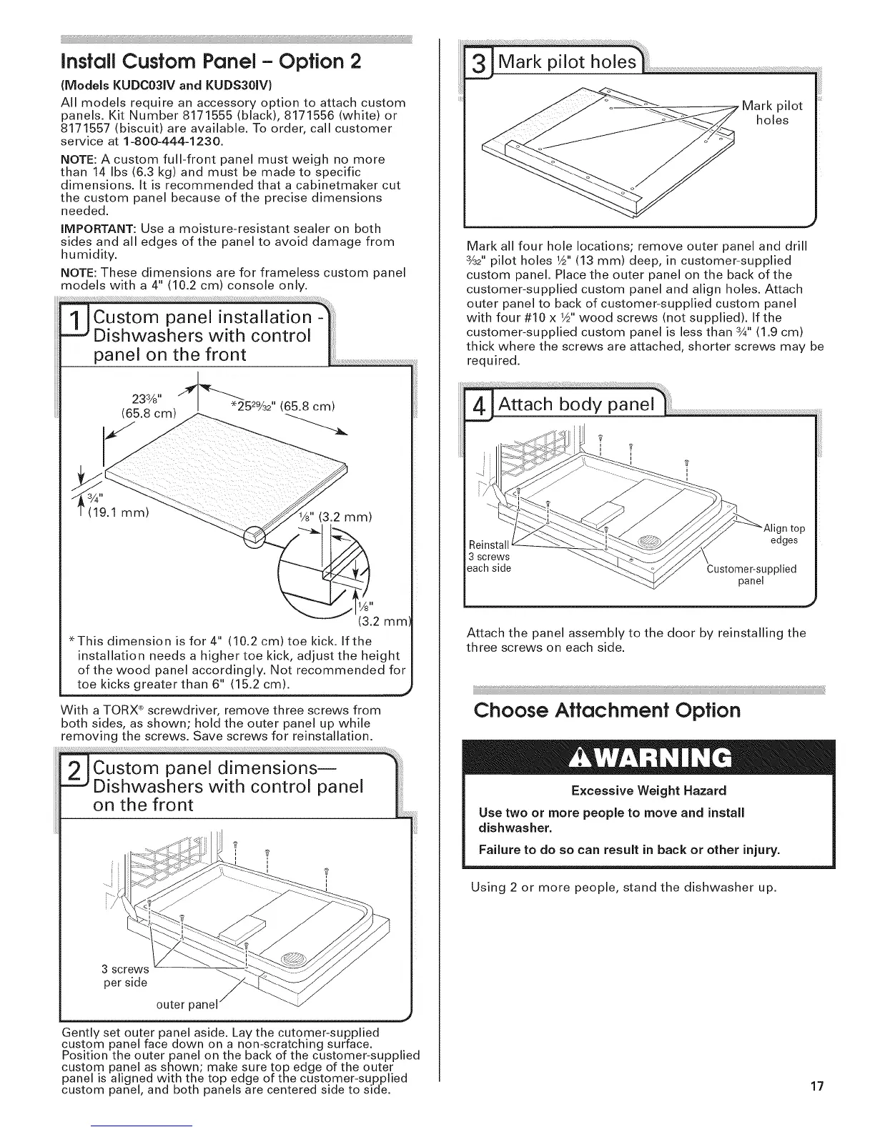 NOTE: A custom full-front panel must weigh no more