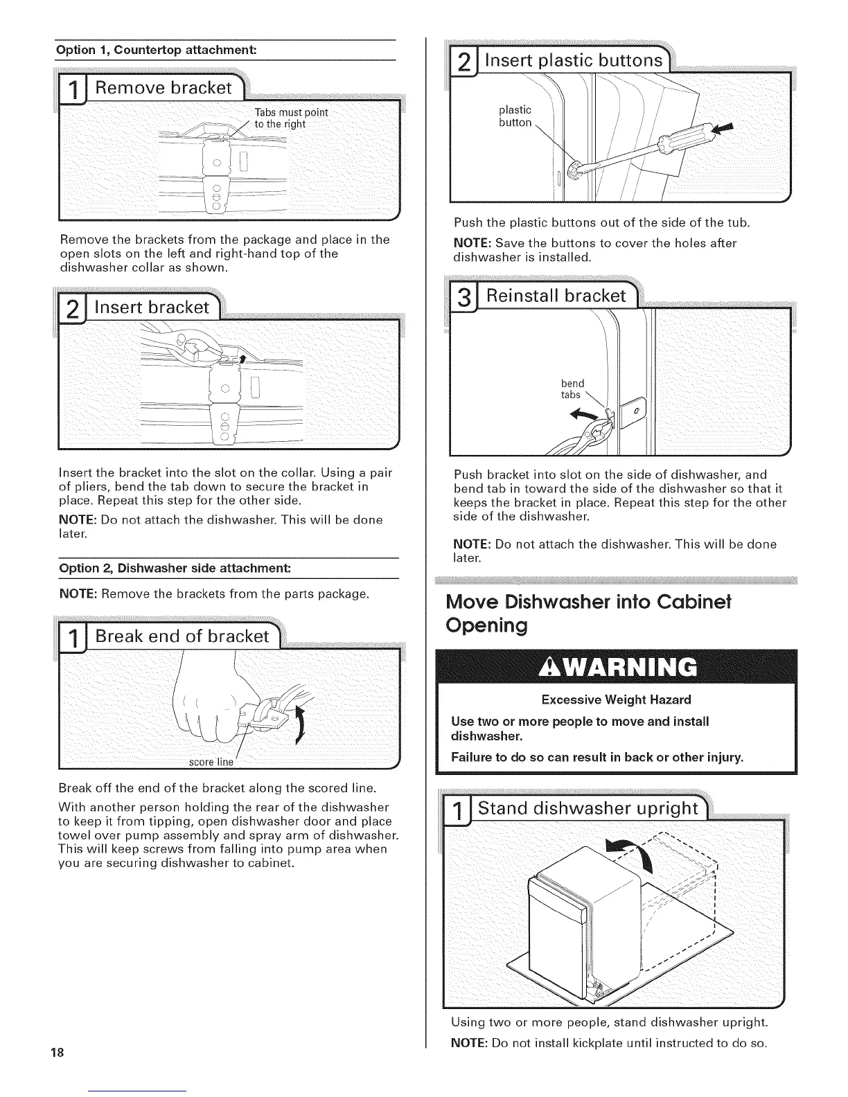 NOTE: Do not attach the dishwasher. This will be done