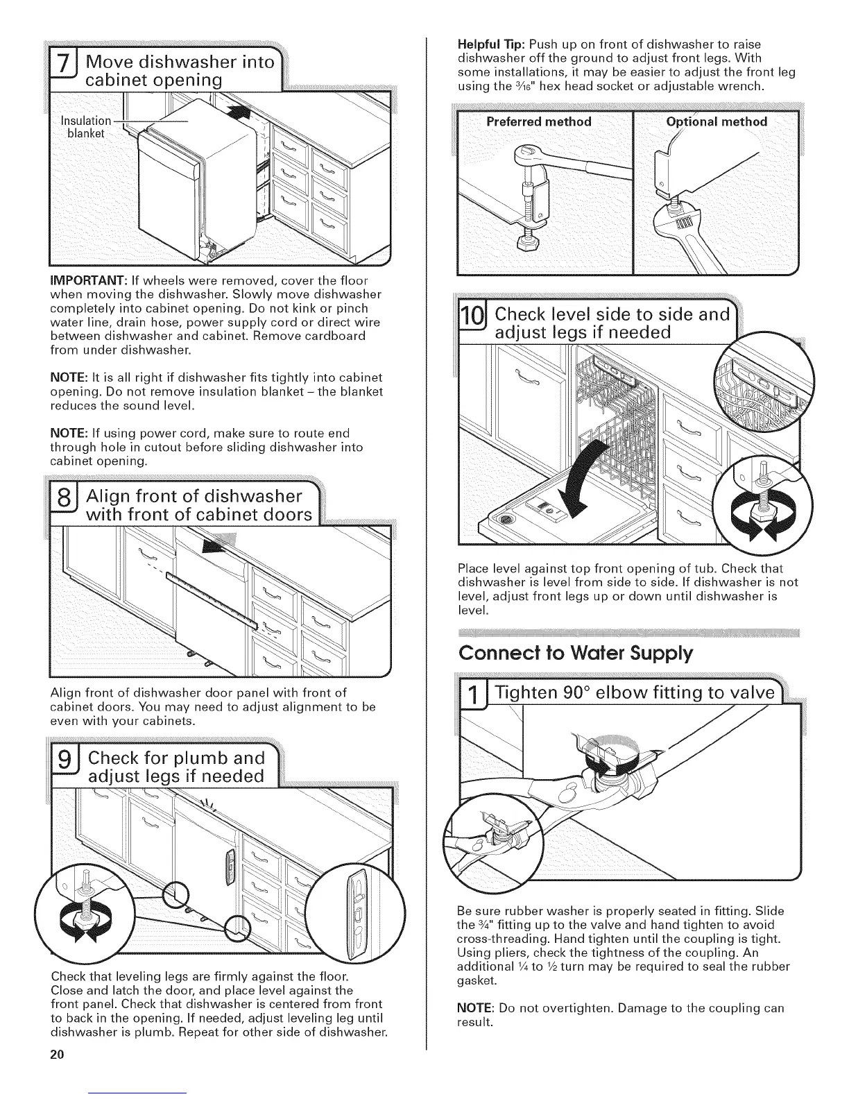 NOTE: It is all right if dishwasher fits tightly into cabinet