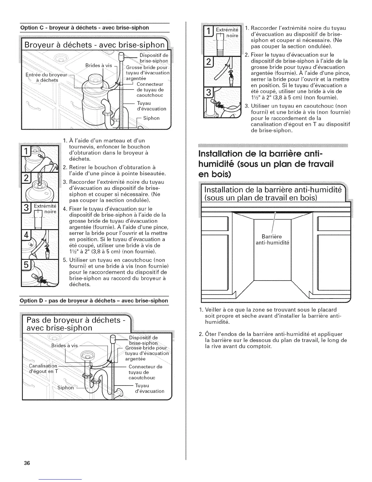 Option D = pas de broyeur _ d6chets - avec brise=siphon
