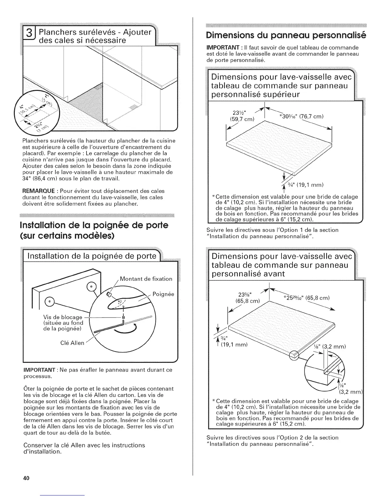 de calage plus haute, regler la hauteur du panneau