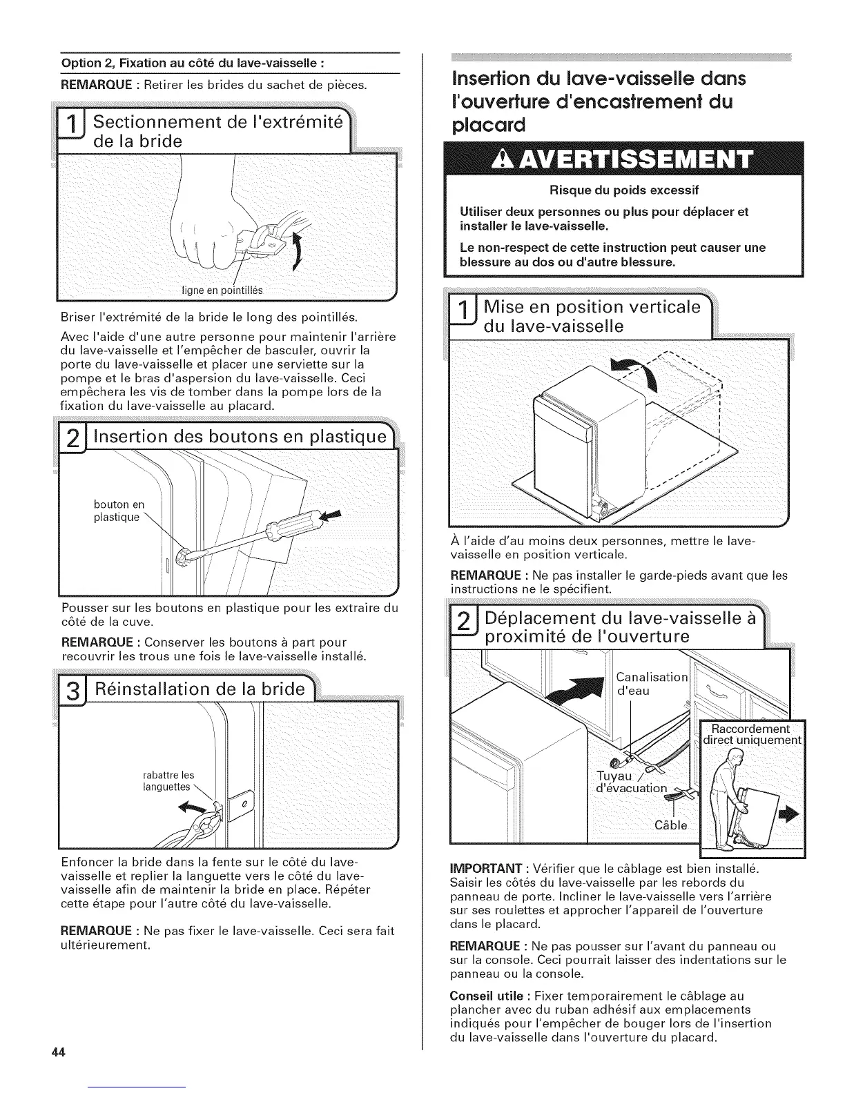 REMARQUE : Ne pas fixer le lave-vaisselle. Ceci sera fait