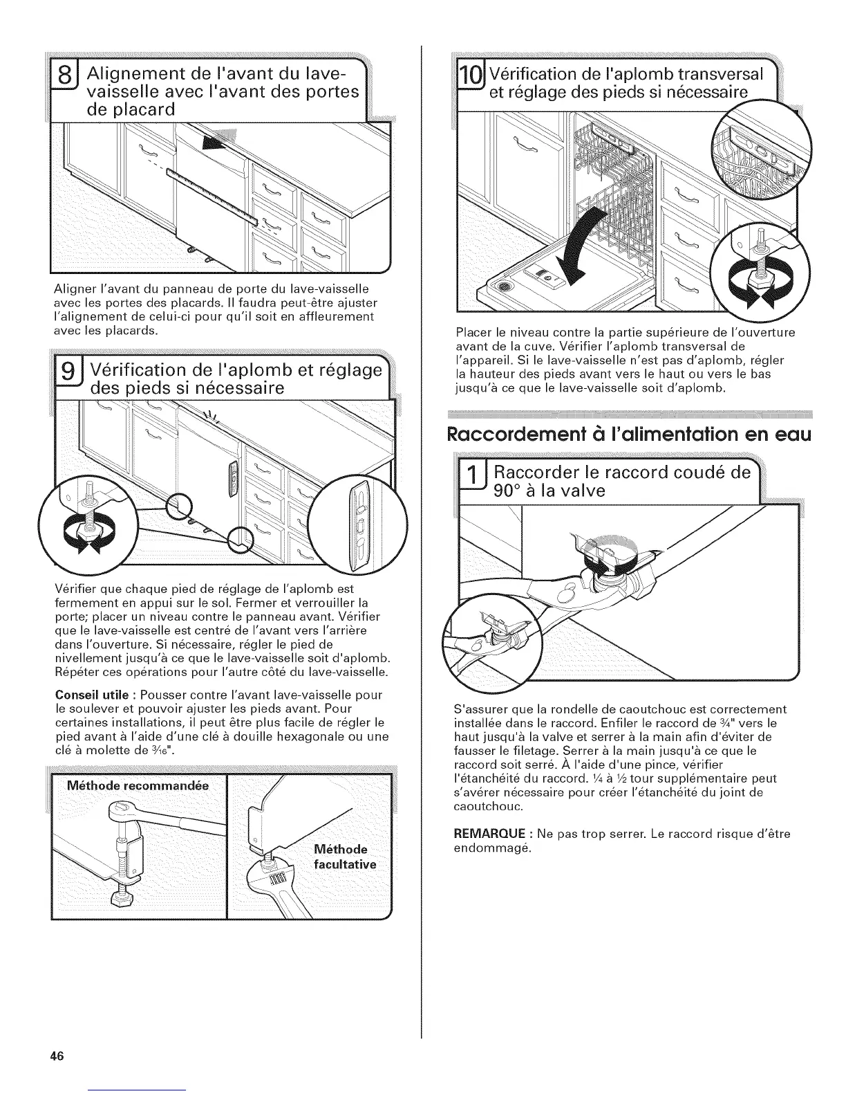 nivellement jusqu'_ ce que le lave-vaisselle soit d'aplomb.