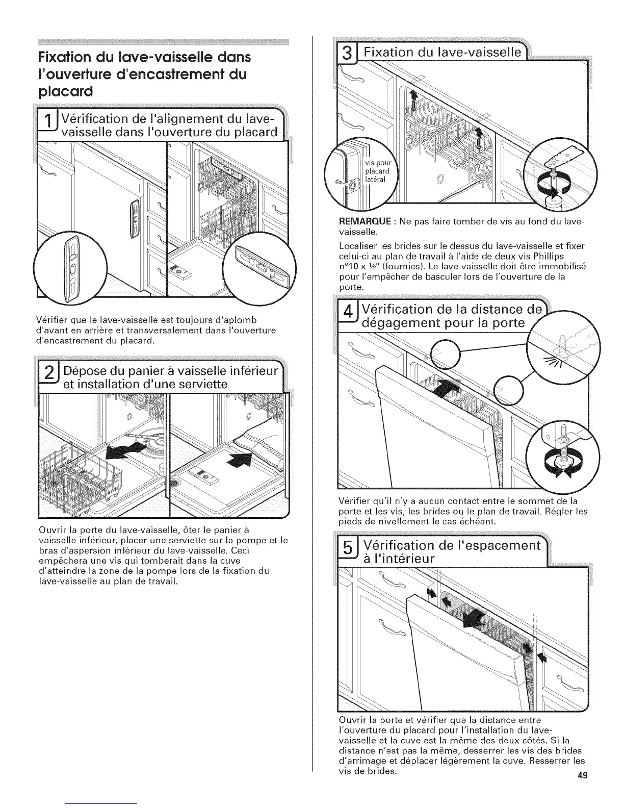 n°10 x W' (fournies). Le lave-vaisselle doit &tre immobilise