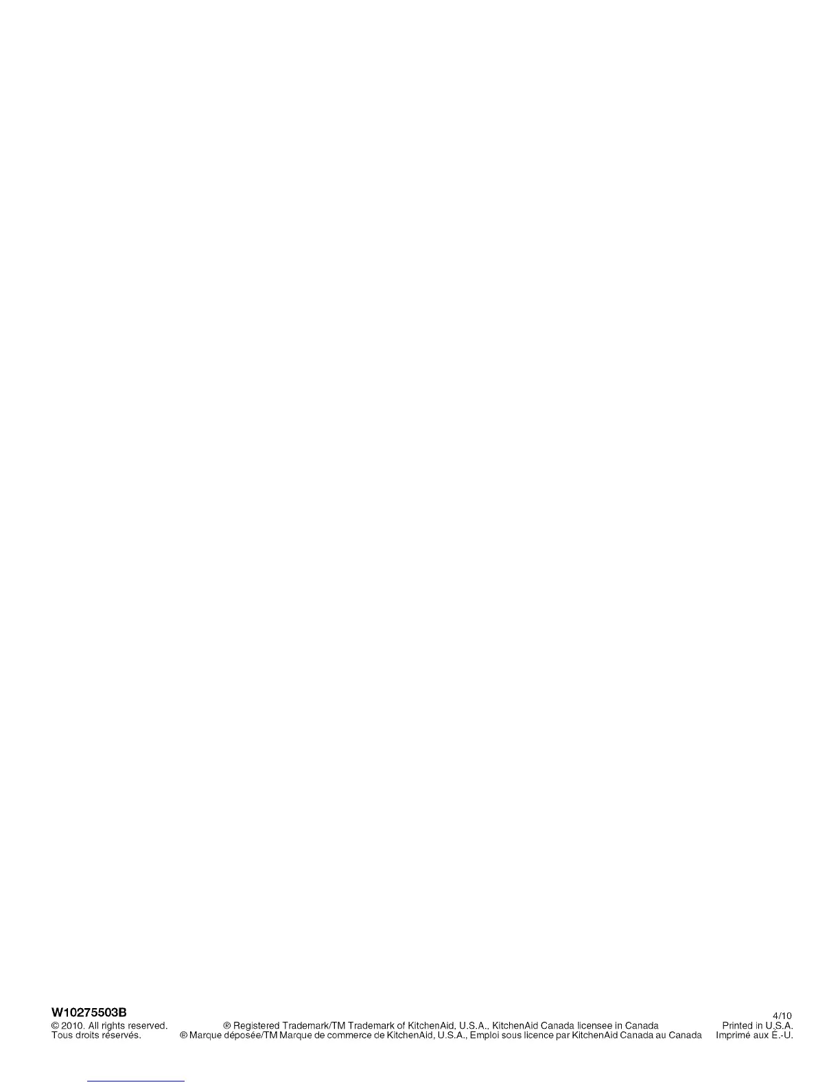 © 2010. All rights reserved. ® Registered Trademark/TM Trademark of KitchenAid, U.S.A., KitchenAid Canada licensee in Canada Printed in U.S.A.