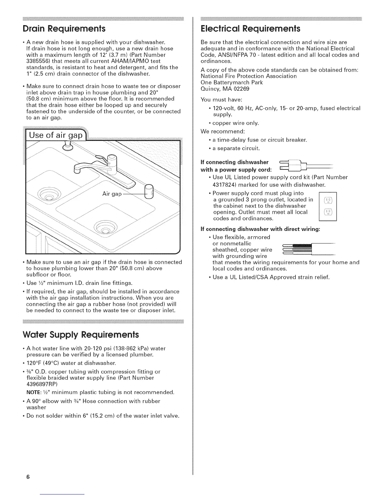 If required, the air gap, should be installed in accordance