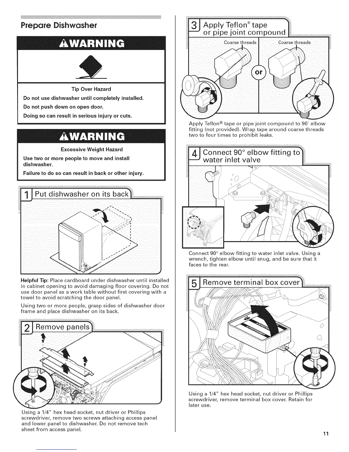 Apply Teflon ® tape or pipe joint compound to 90 ° elbow