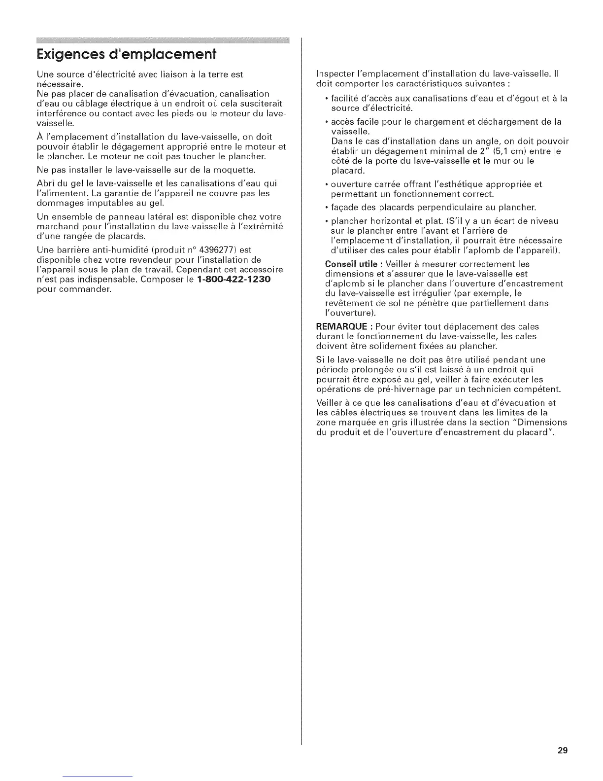 I'emplacement d'installation du lave-vaisselle, on doit