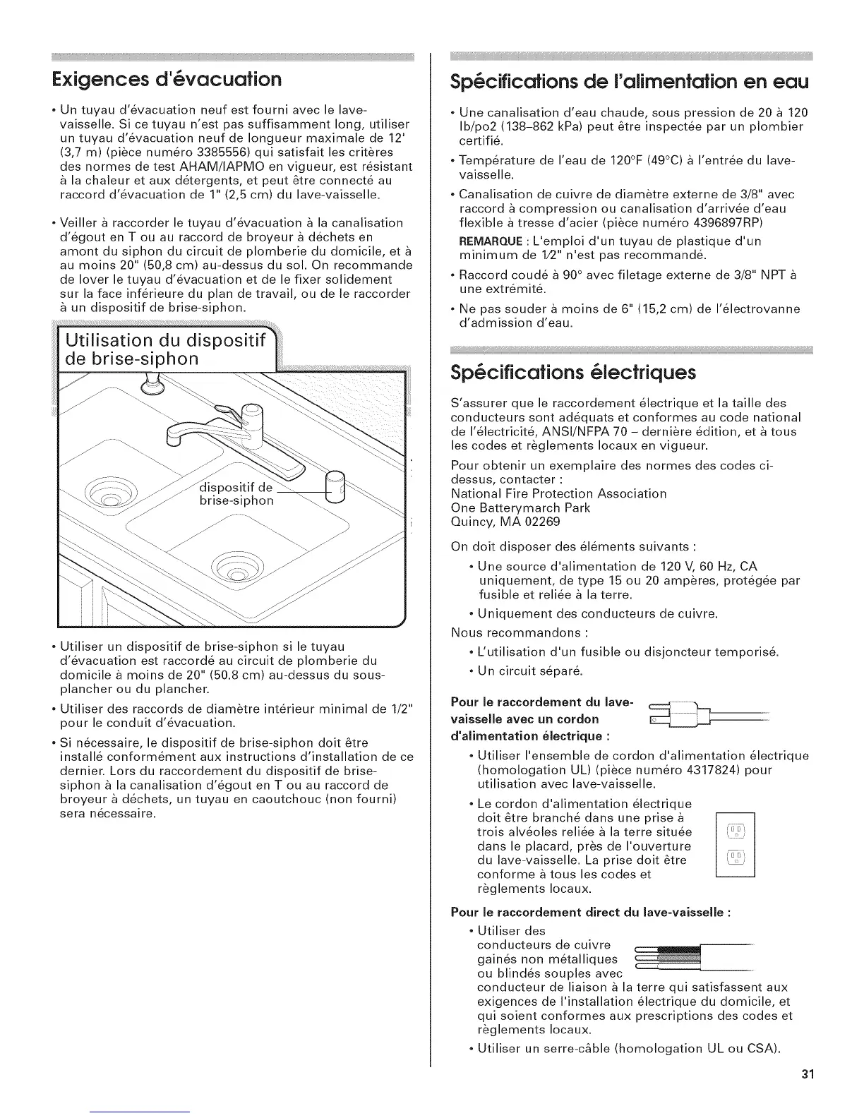 Si necessaire, le dispositif de brise-siphon dolt &tre