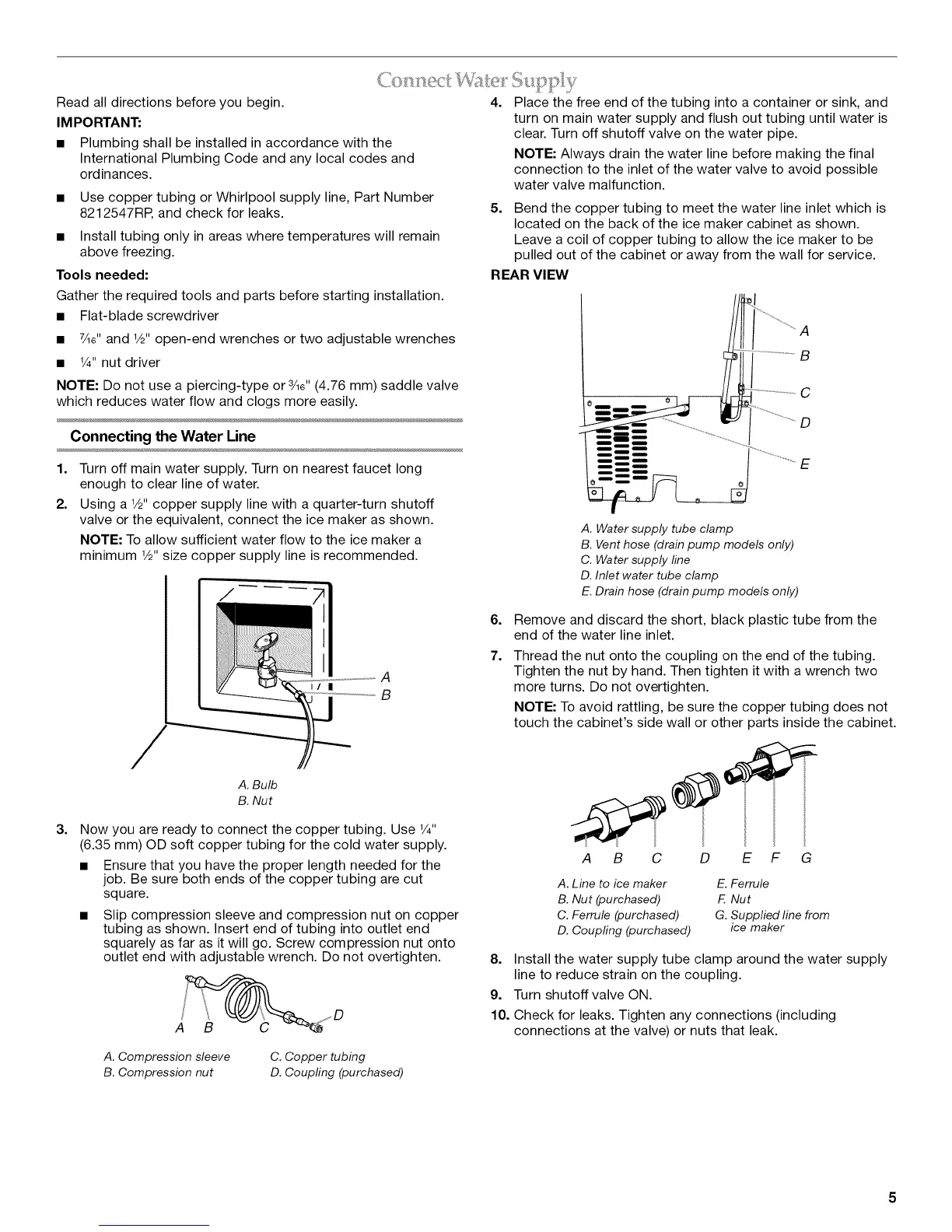 • UsecoppertubingorWhirlpoolsupplyline,PartNumber