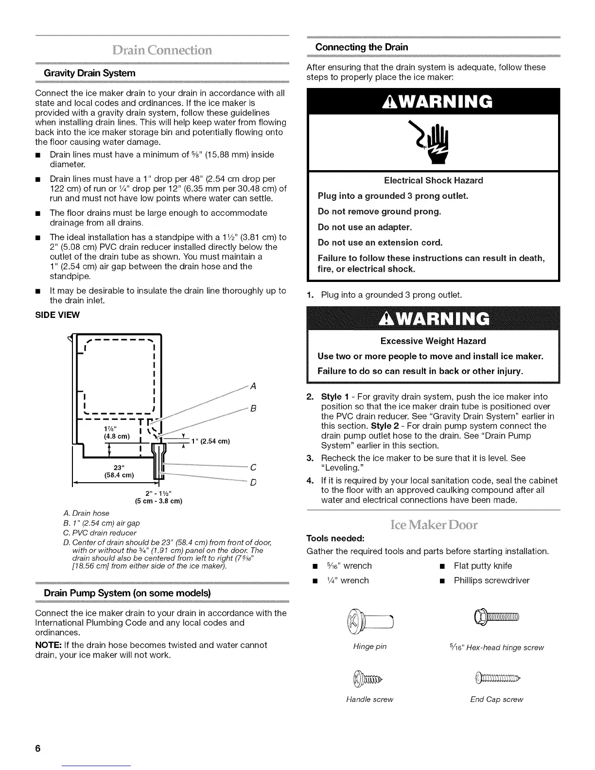 the PVC drain reducer. See "Gravity Drain System" earlier in