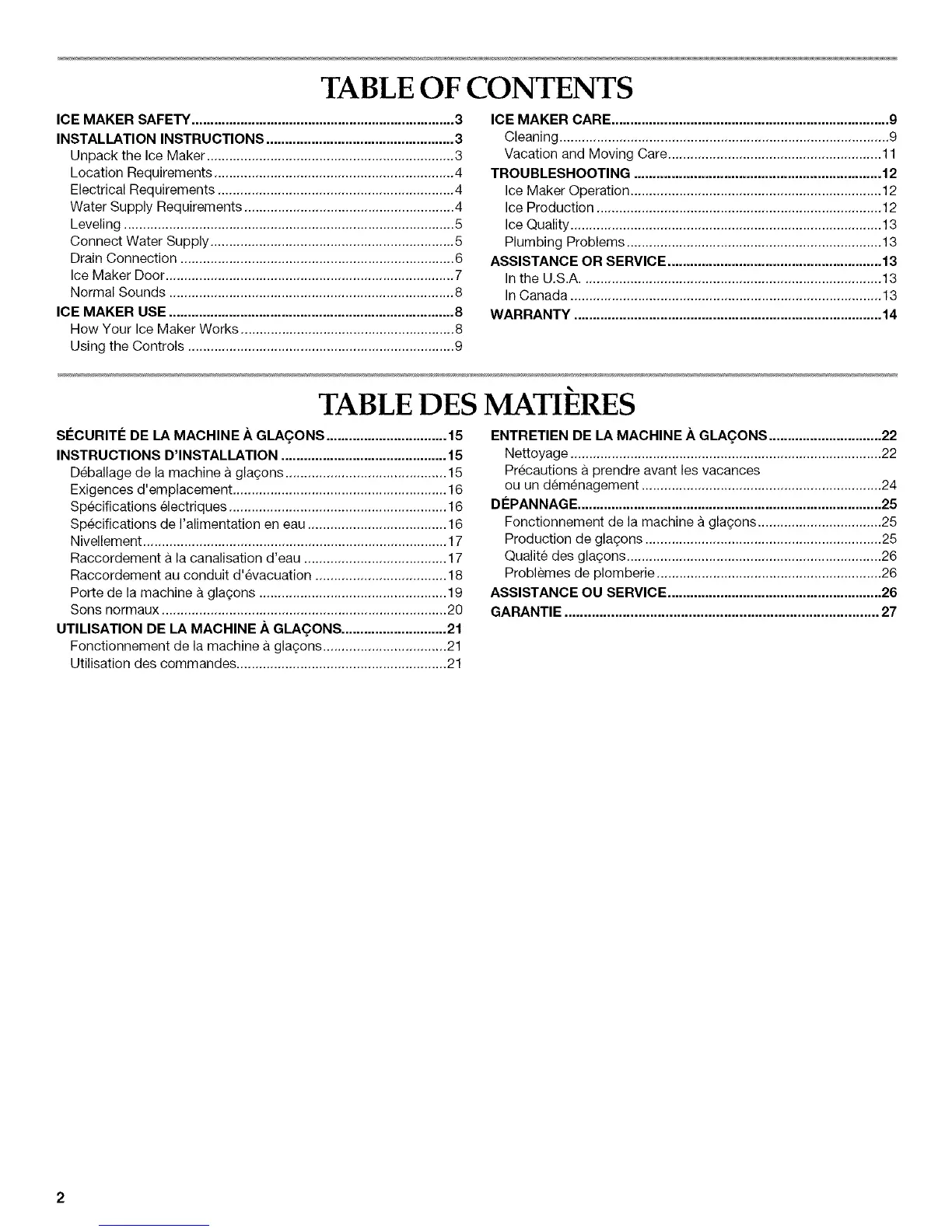 ICE MAKER SAFETY ...................................................................... 3