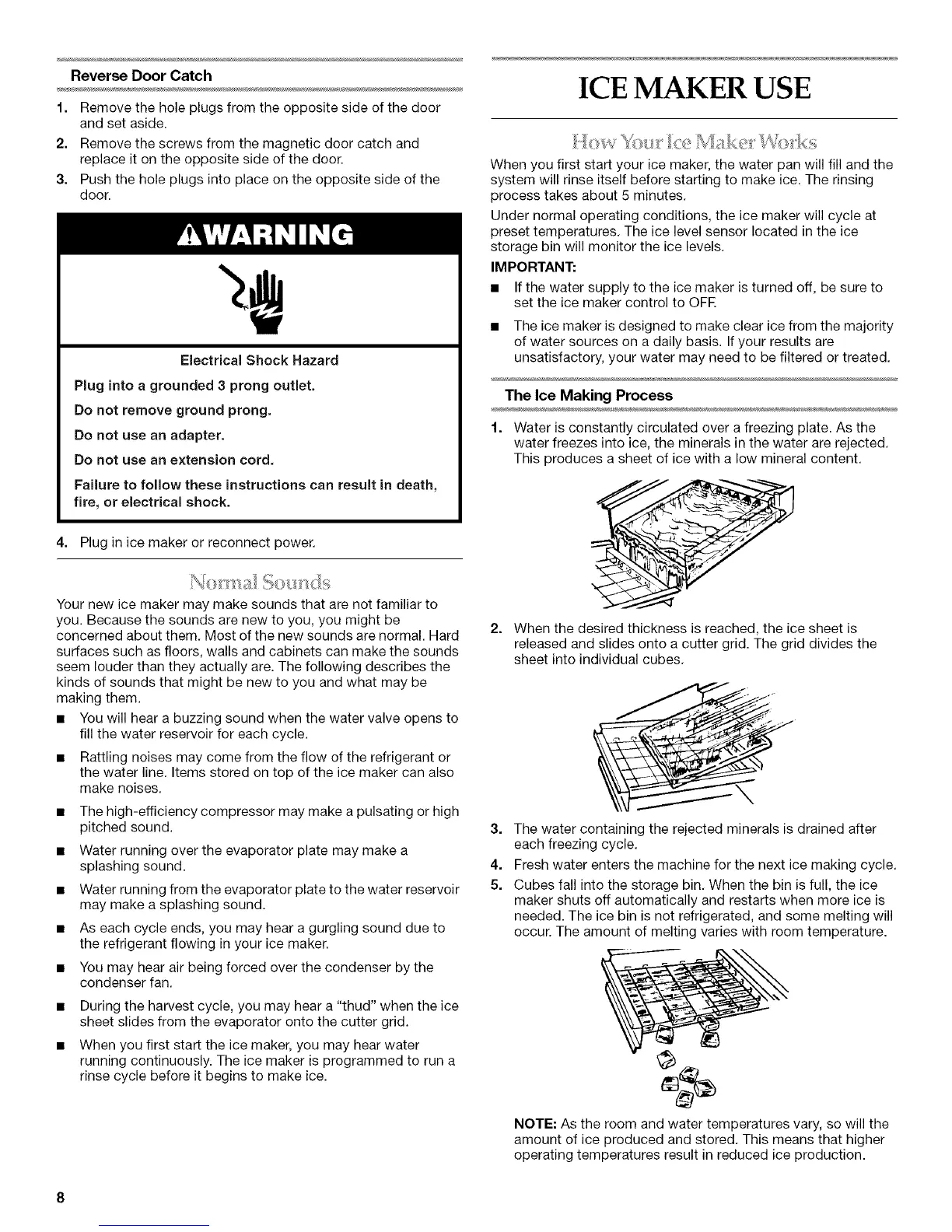• During the harvest cycle, you may hear a "thud" when the ice